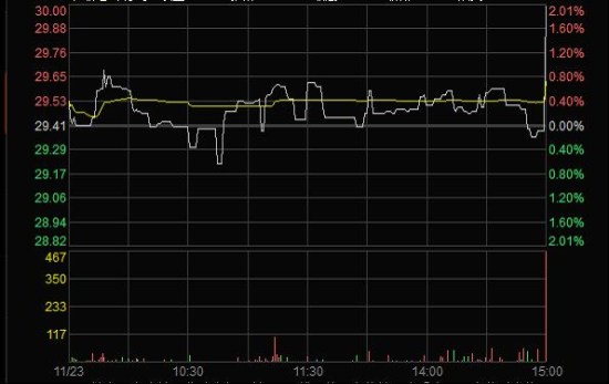 2011年11月23日臨近收盤期間(14:56:24至14:59:28),任某某為了在短期內(nèi)拉升股價,大量申報買入“X”4筆共計63,000股,占尾市階段市場申買量的比例高達75.54%;委托價格由29.60元升至32.00元,每筆均高于當(dāng)時市場上的買1檔價格,三分鐘內(nèi)將股價由29.35元拉升至30元收盤,拉升幅度達2.21%。(見下圖)