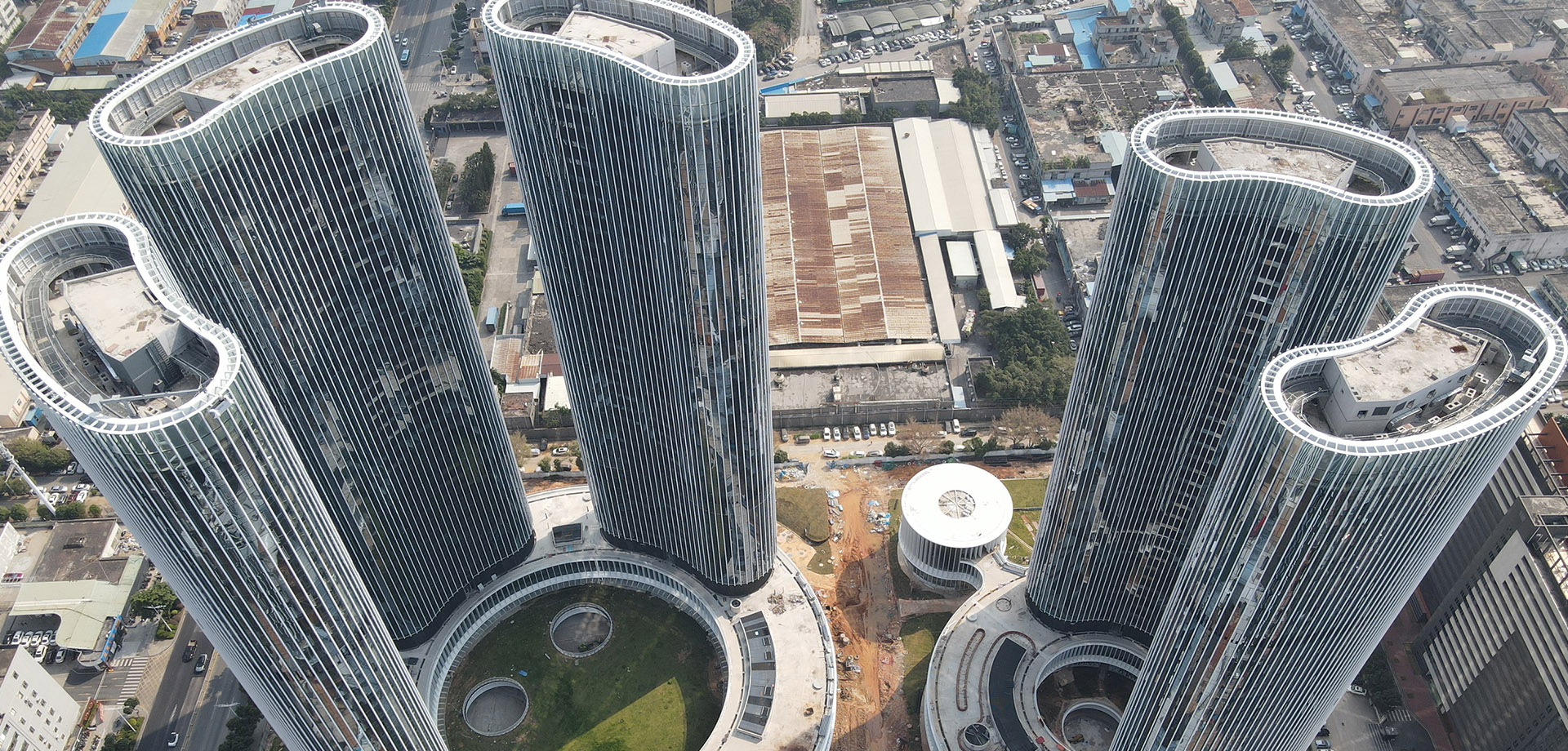 幕墻面積:約11.3萬m2 項(xiàng)目設(shè)計(jì):美國KPF建筑事務(wù)所 幕墻類型:框架式玻璃幕墻、弧形鋁板幕墻系統(tǒng)、鋁合金格柵系統(tǒng)等