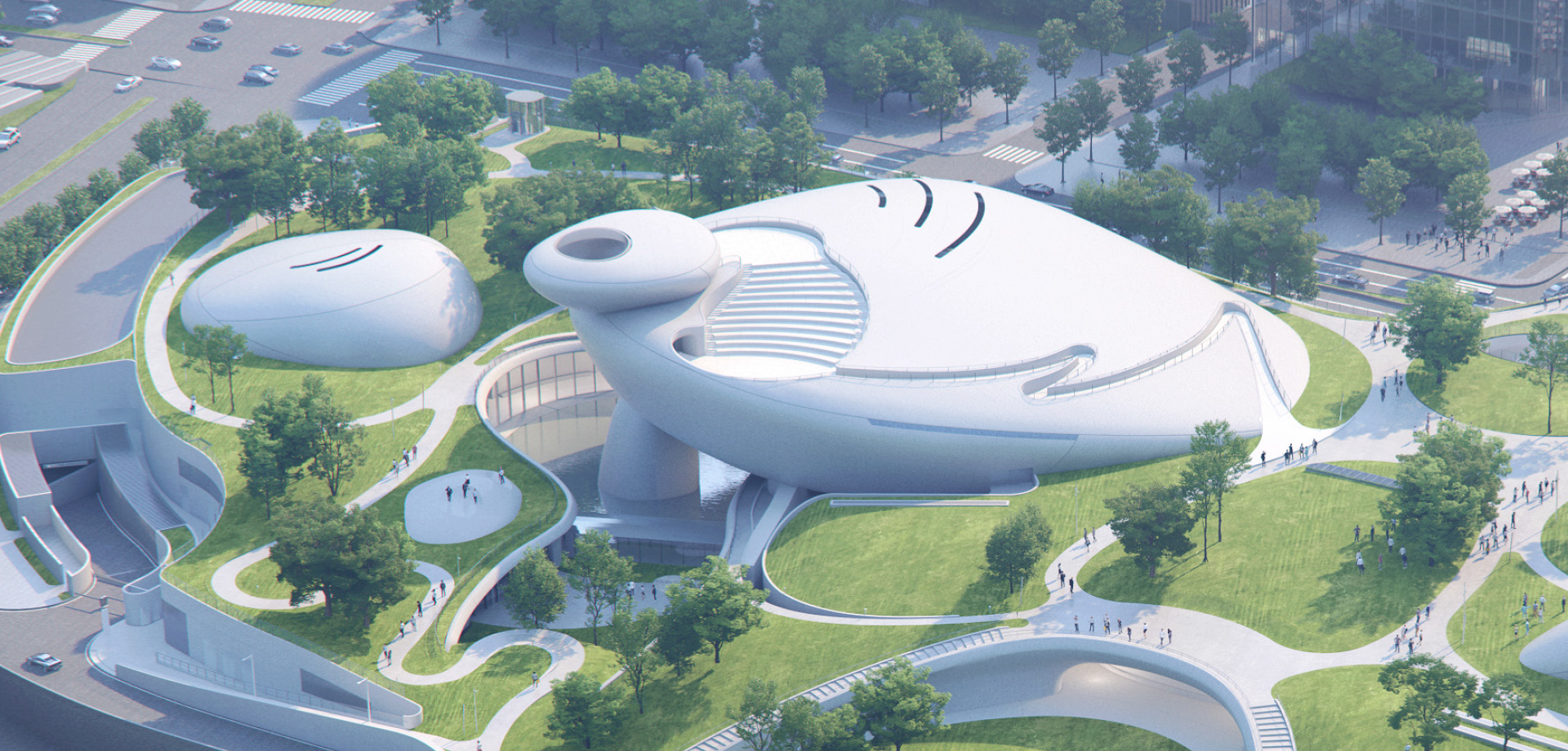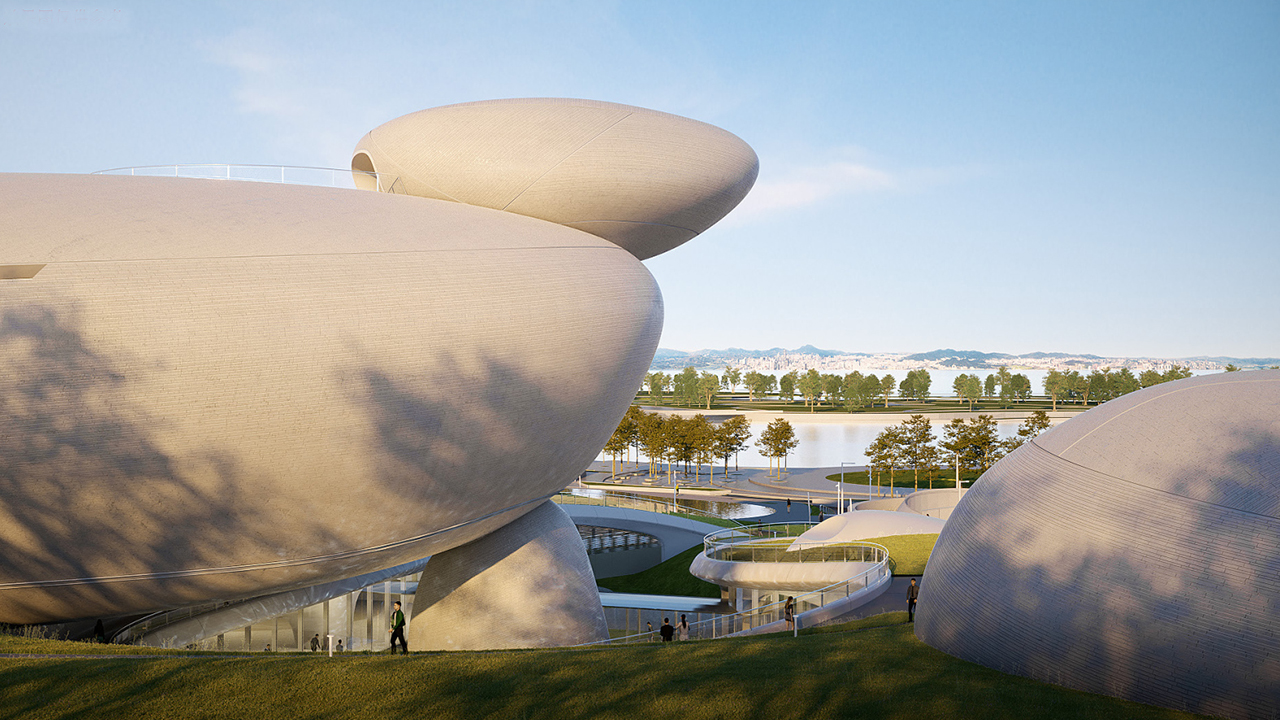 項目設(shè)計:MAD建筑事務(wù)所 幕墻類型:石材幕墻、UHPC幕墻、水幕亞克力采光頂?shù)?