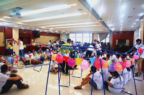 最后,活動(dòng)要求每組把自己所搭接的過(guò)山車模型連接起來(lái),實(shí)現(xiàn)籃球在各個(gè)軌道中的連續(xù)滾動(dòng)。這一個(gè)個(gè)相連的軌道就像是一個(gè)完整的生命樹系統(tǒng),通過(guò)一個(gè)籃球的滾動(dòng)實(shí)現(xiàn)了彼此的連接,成就了共同的目標(biāo)與價(jià)值。這也正像建科集團(tuán)的各個(gè)團(tuán)隊(duì)通過(guò)各自團(tuán)隊(duì)員工的認(rèn)真負(fù)責(zé),努力完成本團(tuán)隊(duì)任務(wù),進(jìn)而通過(guò)各團(tuán)隊(duì)的相互配合與連接實(shí)現(xiàn)集團(tuán)共同的目標(biāo)。