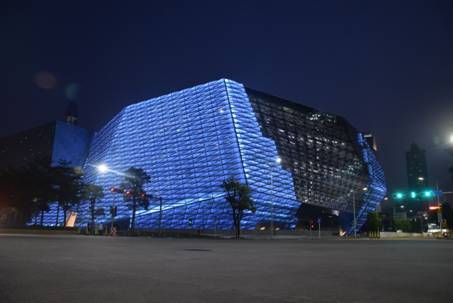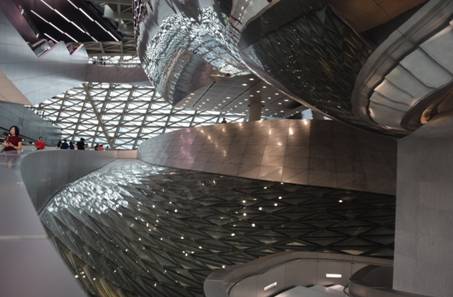 “兩館”作為市民了解城市發(fā)展進(jìn)程與領(lǐng)略當(dāng)代藝術(shù)現(xiàn)狀的展館,完全建成之后每年將吸引龐大的游客量。如何塑造一個(gè)舒適的游覽空間是擺在建筑設(shè)計(jì)者和建造者面前的一個(gè)難題?!皟绅^”采用大量?jī)A斜、扭曲和旋轉(zhuǎn)的曲面幕墻設(shè)計(jì),保證了最大的采光效果,方大幕墻系統(tǒng)以精細(xì)的產(chǎn)品設(shè)計(jì)和卓越的產(chǎn)品性能,很好的滿足了設(shè)計(jì)師的要求,營(yíng)造了一個(gè)適宜觀覽的、自然柔和的光影空間,體現(xiàn)了以人為本的產(chǎn)品理念。