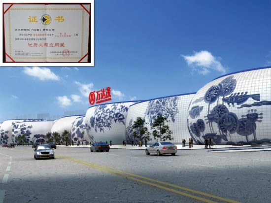 方大青花瓷鋁單板應(yīng)用于南昌萬達(dá)文化旅游城,榮獲2016年度金屬復(fù)合材料行業(yè)“優(yōu)質(zhì)工程應(yīng)用獎(jiǎng)”
