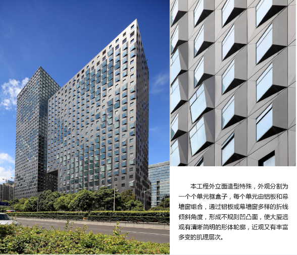 中廣核大廈是中國(guó)五百?gòu)?qiáng)企業(yè)中廣核集團(tuán)的總部大廈,坐落于深圳市福田區(qū)。大廈共2棟,分別為24層、39層的高層建筑,其幕墻工程由建科集團(tuán)承建。中廣核大廈幕墻系統(tǒng)簡(jiǎn)約、精致,很好地展現(xiàn)出中廣核集團(tuán)嚴(yán)謹(jǐn)、穩(wěn)健而又緊扣未來(lái)的國(guó)際化企業(yè)形象,是建科集團(tuán)在高端異形領(lǐng)域幕墻又一力作。中廣核幕墻項(xiàng)目榮獲“國(guó)家優(yōu)質(zhì)工程獎(jiǎng)”,是工程建設(shè)行業(yè)對(duì)建科集團(tuán)卓越施工能力的充分肯定,也再一次彰顯了方大高端幕墻系統(tǒng)在業(yè)內(nèi)的品牌影響力。