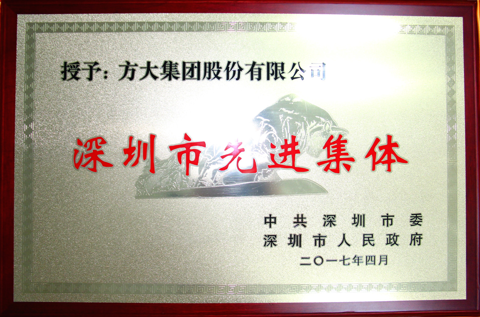 4月28日,方大集團(tuán)股份有限公司榮獲“深圳市先進(jìn)集體”榮譽(yù)稱號(hào)。
