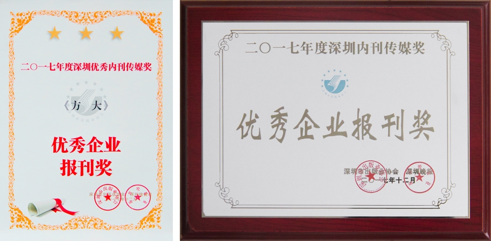 12月,方大集團(tuán)企業(yè)刊物《方大》榮獲深圳市出版業(yè)協(xié)會(huì)“2017年度優(yōu)秀企業(yè)報(bào)刊獎(jiǎng)”,多年來堅(jiān)持以專業(yè)務(wù)實(shí)態(tài)度傳遞公司資訊、傳播企業(yè)文化的《方大》再一次獲得業(yè)界的肯定與好評(píng)。