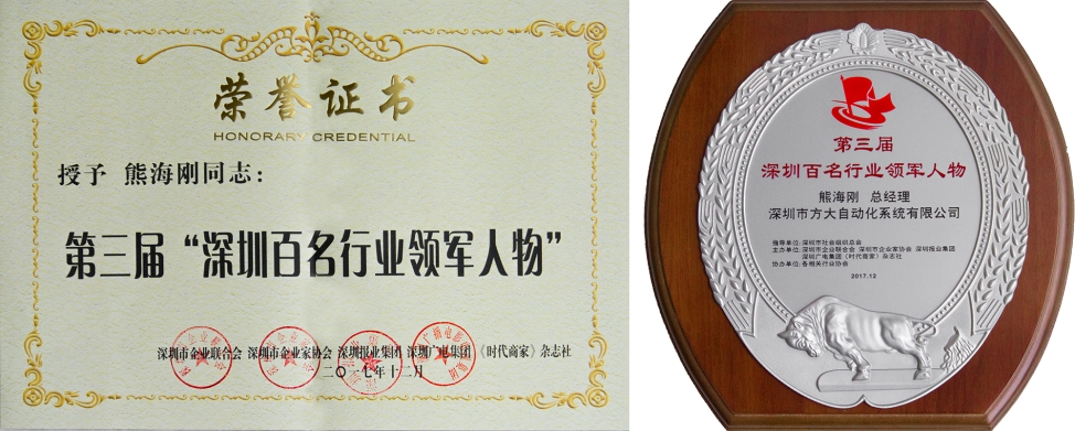 2017年12月,方大集團(tuán)股份有限公司全資子公司深圳市方大自動化系統(tǒng)有限公司總經(jīng)理熊海剛作為深圳城市軌道交通領(lǐng)域領(lǐng)軍人物代表當(dāng)選“深圳百名行業(yè)領(lǐng)軍人物”。