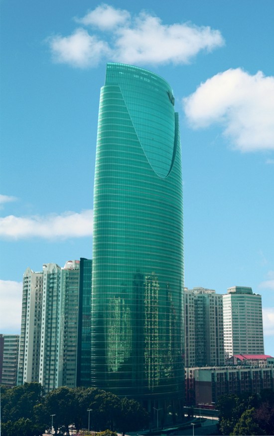 大廈外立面主要采用銀色鋁合金框+綠色和灰色中空LOW-E玻璃幕墻系統(tǒng),樓層間采用不銹鋼裝飾板,玻璃幕墻外側(cè)設(shè)置橫向的不銹鋼遮陽(yáng)板,通過外墻微妙的反光和綠樹、藍(lán)天、白云等自然景觀和周邊建筑物隨著時(shí)間在建筑物上的倒影變化,同時(shí)遮陽(yáng)板也將隨著陽(yáng)光照射的角度在樓身生成不斷變化的影子紋理,使整個(gè)建筑變得很豐富,又能與周邊建筑和環(huán)境相協(xié)調(diào)。