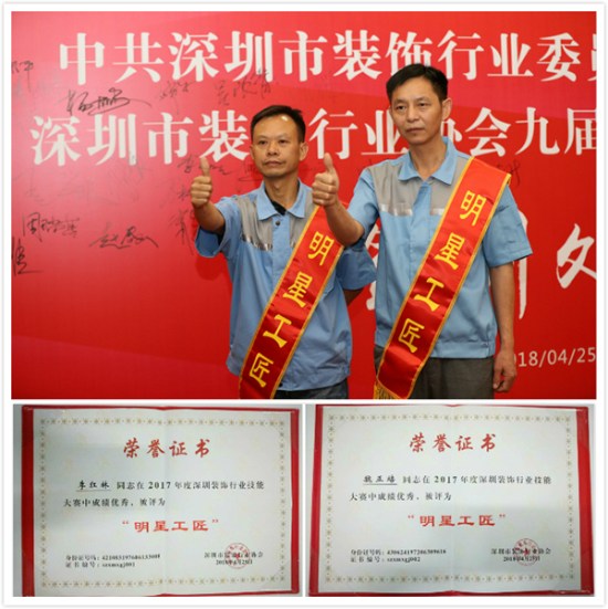 日前,深圳市方大建科集團(tuán)有限公司員工李紅林、魏正培,憑借過(guò)硬的技術(shù)、精湛的工藝,在深圳市裝飾行業(yè)明星工匠評(píng)選活動(dòng)中脫穎而出,榮獲“明星工匠”稱號(hào)。
