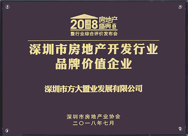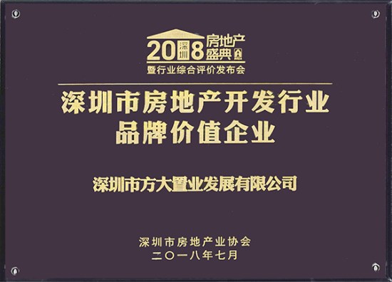 7月10日,第八屆深圳房地產(chǎn)盛典暨行業(yè)綜合評價發(fā)布會舉行,公布了2018綜合評價結果,方大置業(yè)公司獲評“深圳市房地產(chǎn)開發(fā)行業(yè)品牌價值企業(yè)”。