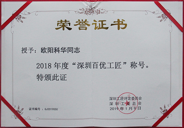 為促進深圳市技能人才隊伍建設,培養(yǎng)深圳工匠群體,弘揚崇尚技能、尊重人才的深圳工匠精神,深圳工業(yè)總會組織開展第三屆“深圳百優(yōu)工匠”評選活動。方大智創(chuàng)科技員工歐陽科華、朱振飛、孔德兵在技術創(chuàng)新、攻克技術難關、傳承傳統(tǒng)工藝等方面做出較大成績,具有良好的職業(yè)道德和敬業(yè)精神,并在公司里產(chǎn)生良好經(jīng)濟社會效益和示范作用。他們不僅在企業(yè)充分證明了他們的價值,此次獲得的殊榮更表明他們得到行業(yè)的尊敬和認可。