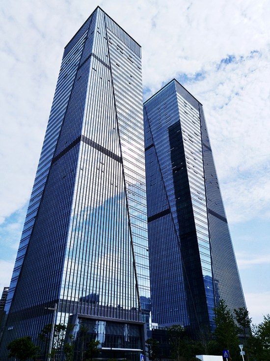 深圳·萬科濱海置地大廈位于深圳市福田區(qū),幕墻類型主要是鋸齒狀單元式玻璃+石材+穿孔鋁板幕墻。項目塔樓采用L型和I型單元板塊組成,面板采用蜂窩石材、中空夾膠玻璃和穿孔鋁板。為了增強幕墻系統(tǒng)的通風性能,在穿孔鋁板后側(cè)設(shè)置了內(nèi)開的鋁板窗。鋸齒狀的幕墻類型和特色材料的組合使該項目成為濱河大道上的一道靚麗風景,同時也給設(shè)計施工帶來了難題,項目團隊通過三維模擬確保L型板塊與I型板塊精確插接,對使用高度157m的蜂窩石材連接方案進行了加強措施,并順利通過幕墻專家專項的評審。