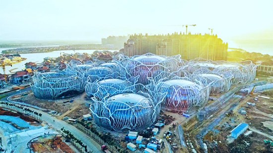 海口·恒大?;◢u位于海南省儋州市,該島由三個既獨立又緊密相連的離岸式島嶼組成,從高空俯瞰,形狀猶如一朵盛開的鮮花。方大建科承建國際會議中心幕墻工程,由9個單獨的球型建筑組成,各球體幕墻采用了玻璃面板。項目團隊攻克異形幕墻設(shè)計施工、鋼結(jié)構(gòu)屋蓋跨度大以及施工作業(yè)面小等難題,與業(yè)主攜手并肩,互相激勵,不辭一切加快1#島項目建設(shè),為海花島的開業(yè)打下了堅實的基礎(chǔ)。