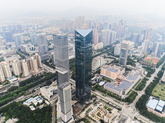 深業(yè)上城(南區(qū))塔2位于深圳市福田區(qū)的中心,建筑高度300米,大廈的外形簡潔,通過內(nèi)部空間和外立面高水準細節(jié)設(shè)計來展現(xiàn)建筑的優(yōu)雅魅力。建筑的外立面為純凈的全超白玻璃幕墻,標準單元板寬度3米、高度4.5米,達到通常分格(1.5米)的兩倍,最大的單元板塊高度達8米,為用戶提供無遮擋視覺效果。為了降低風(fēng)荷載,在塔樓四角做了內(nèi)凹處理,L型的轉(zhuǎn)角板塊為1.5+3米。方大建科在施工過程中,對超高單元板塊垂直運輸、安裝等難點認真分析并給出了最優(yōu)的施工方案,通過生產(chǎn)、施工環(huán)節(jié)的質(zhì)量控制實現(xiàn)了玻璃及板塊平整度的極致效果。項目完成后,建筑水平與垂直線條勾勒出秩序均衡美,簡練、寧靜外立面體現(xiàn)人與自然和諧融合。