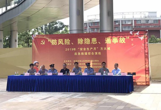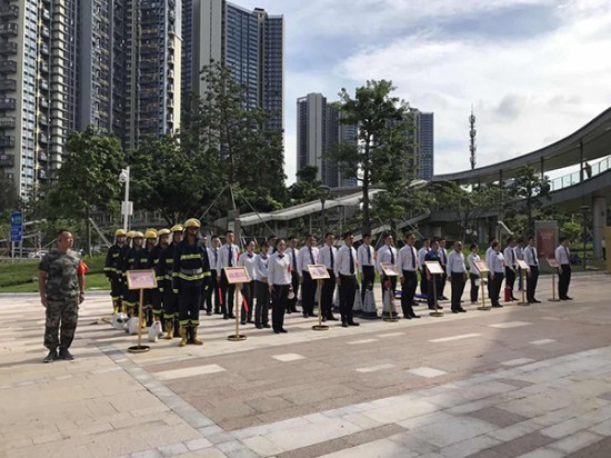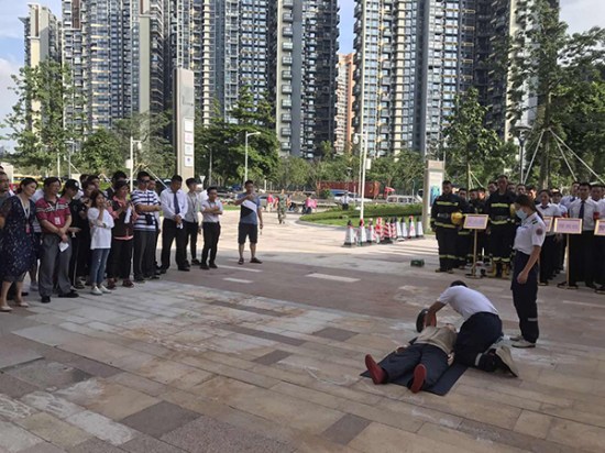 為檢驗深圳方大城安全預(yù)警系統(tǒng)有效性,強(qiáng)化業(yè)主及物業(yè)相關(guān)人員安全意識,提升應(yīng)急避險、自我救護(hù)能力,6月27日下午,由深圳市南山區(qū)桃源街道辦事處主辦、方大城物業(yè)服務(wù)中心協(xié)辦的“防風(fēng)險、除隱患、遏事故”應(yīng)急救援綜合演練在方大城舉行。桃源街道辦主任李海濱,桃源派出所副所長林偉文,方大集團(tuán)副總裁、置業(yè)公司董事長林克檳等參加演練。