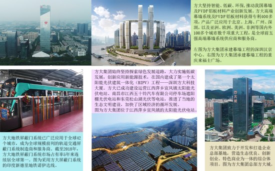 24年來(lái),方大堅(jiān)持智能、低碳、環(huán)保,推動(dòng)我國(guó)幕墻及PVDF鋁板材料產(chǎn)業(yè)創(chuàng)新發(fā)展。方大高端幕墻系統(tǒng)及PVDF鋁板材料獲得專利400多項(xiàng),產(chǎn)品廣泛應(yīng)用于北京、上海、廣州、深圳,以及亞洲、歐洲、美洲、非洲等國(guó)內(nèi)外100多個(gè)城市數(shù)千項(xiàng)重大工程,包括北京外交部大樓、上海花旗銀行大廈、廣州凱達(dá)爾樞紐國(guó)際廣場(chǎng)、深圳寶安國(guó)際機(jī)場(chǎng)T3航站樓、深圳漢京中心、重慶來(lái)福士廣場(chǎng)、南昌萬(wàn)達(dá)茂、武漢漢秀劇場(chǎng)、澳門科學(xué)館、澳大利亞萬(wàn)豪酒店、英國(guó)倫敦摩天大廈、安哥拉羅安達(dá)新國(guó)際機(jī)場(chǎng)航站樓、沙特諾拉公主大學(xué)城等全球標(biāo)志性工程或重點(diǎn)建設(shè)項(xiàng)目,屢獲“魯班獎(jiǎng)(國(guó)家優(yōu)質(zhì)工程)”、“詹天佑土木工程獎(jiǎng)”等行業(yè)大獎(jiǎng),創(chuàng)造了我國(guó)建筑幕墻行業(yè)多項(xiàng)第一,是全球前五強(qiáng)高端幕墻系統(tǒng)供應(yīng)商和服務(wù)商。