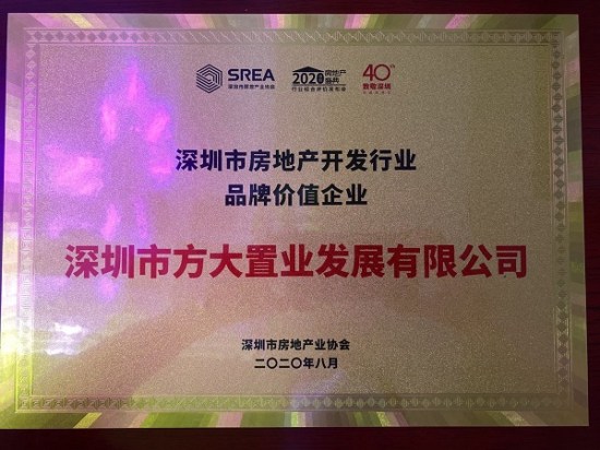 日前,由深圳市住房和建設局、深圳市規(guī)劃和自然資源局指導,深圳市房地產業(yè)協(xié)會主辦的“致敬深圳40年——與城市共生暨第十屆深圳房地產盛典”在深圳華僑城舉行。盛典發(fā)布了《深圳市房地產開發(fā)行業(yè)品牌價值企業(yè)》名單,方大置業(yè)公司連續(xù)三年獲得該榮譽稱號。