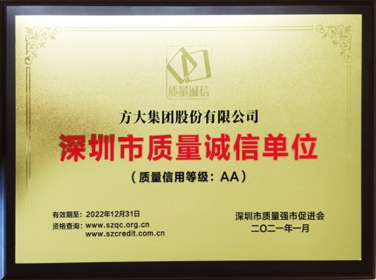 近日,深圳市質(zhì)量強(qiáng)市促進(jìn)會公布了質(zhì)量誠信(示范)單位認(rèn)定名單,方大集團(tuán)獲得“深圳市質(zhì)量誠信單位”認(rèn)證。