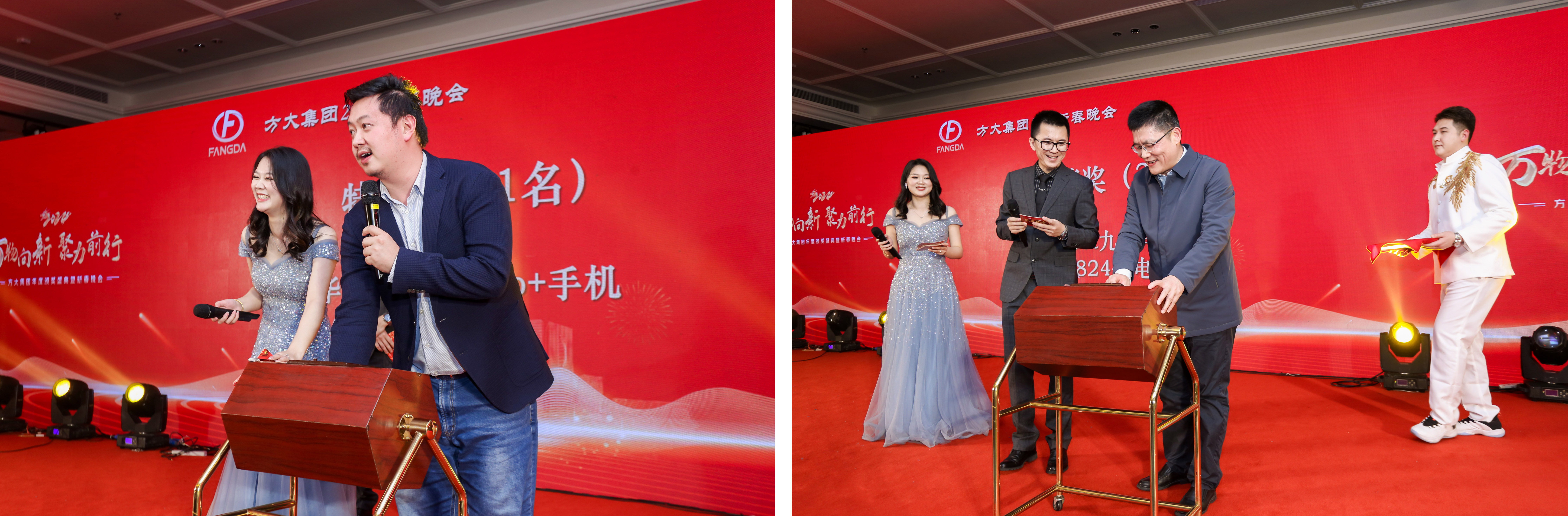 激動(dòng)人心的抽獎(jiǎng)環(huán)節(jié)更是將晚會(huì)氣氛推向高潮。新款手機(jī)、電動(dòng)車、筆記本電腦、生肖黃金套鏈、無人機(jī)……獎(jiǎng)品豐富且實(shí)用,公司領(lǐng)導(dǎo)在緊張的抽獎(jiǎng)環(huán)節(jié)中送出了一份份獎(jiǎng)品,更送出了一份份新春好彩頭。
